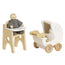 Comprising a poseable wooden baby, a buggy, high chair and all accessories as pictured, it makes for the sweetest dreams for any new family addition.